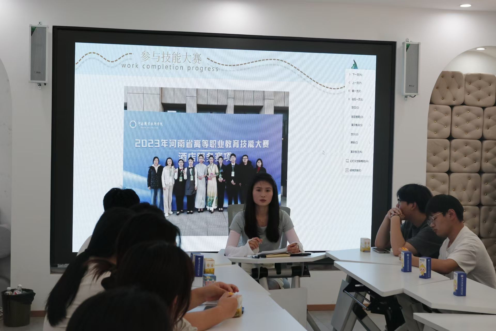 李金月从参加社会实践的经历、做好学生干部的经验和积极参与专业竞赛的感悟三方面向大一同学们讲述了她在生活学习中的所见所得、所思所想。她鼓励同学们把握学校提供的社会实践机会,在活动中锻炼自己、充实自己。她还分享了自己担任团支书的经历,希望同学们积极配合班干部,努力打造和谐共赢、团结向上、活力蓬勃的班团集体。最后,李金月展示了参赛视频,并向同学们介绍了民宿管理专业需具备的职业技能和职业素养,激励同学们认真学习专业知识和技能,全面丰富和发展自己,为梦想不懈奋斗。活动现场气氛轻松活跃,通过学姐的经验分享,民宿管理专业一年级的同学们对本专业有了进一步的认知,对自己未来的奋斗方向也有了更清晰的规划。