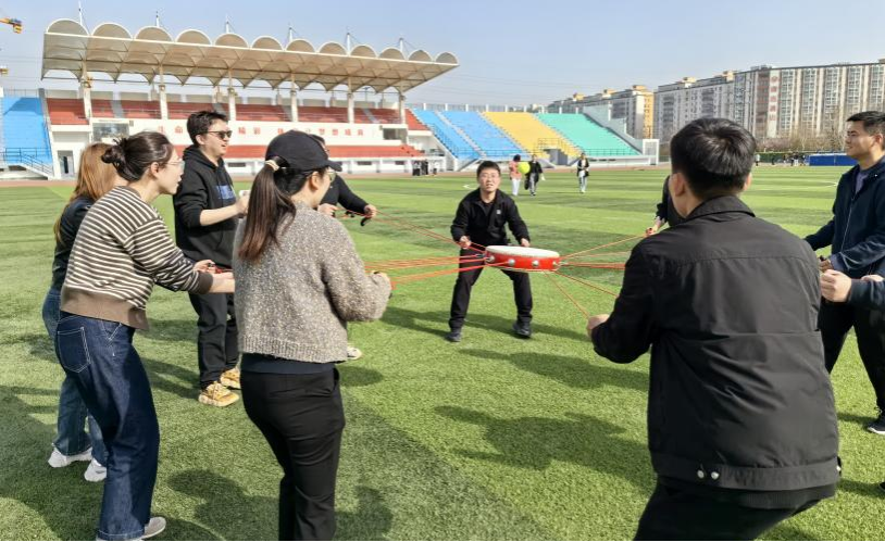 活动伊始,阳光心苑辅导员工作室主持人刘娟分析了春季郁病发生的原因,引导大家通过合理饮食、适当运动、关注当下、记录生活中的小确幸等途径释放压力,调整积极状态投身工作事务,从而指导学生、关心学生、服务学生。活动中,全体辅导员组成两支队伍,每支队伍在规定时间选派队长,形成口号,并进行了队伍风采展示。素质拓展活动环节,辅导员们施展才华、团结协作,共同完成了“同心鼓”、“一圈到底”、“毛毛虫”竞速、“七巧板”各项挑战。活动总结环节,辅导员们相互交流心得,分享为自我赋能的小妙招,旅游学院辅导员李长福表示,此次活动不仅展现了大家面对困难的智慧和意志力,同时也体会到团队中合作和奉献的重要性。