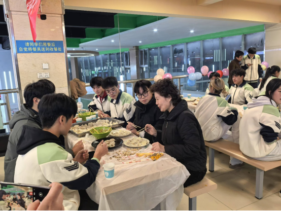 同学们纷纷表示,和老师们围坐一起包饺子、吃饺子,真的犹如回家了一样。大家端着热腾腾的饺子,交流着、欢笑着,脸上洋溢着幸福、喜悦的笑容,冬日的寒冷被小小的饺子融化为暖情。