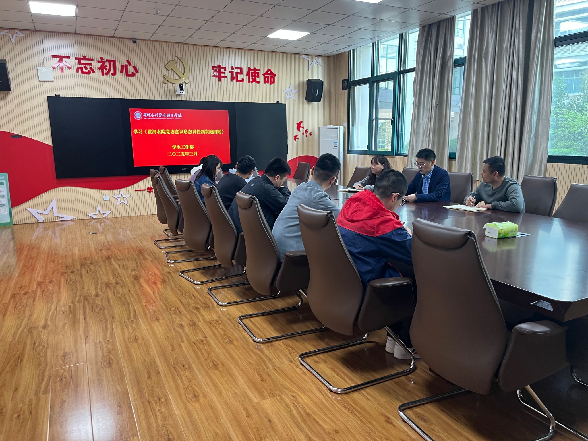 3月11日,学生工作部召开专题学习会议,全体成员深入学习《黄河水院党委意识形态责任制实施细则》《中共yl8cc永利官网委员会网络意识形态工作责任制实施细则》及2025年两会精神。会议由学生工作部部长商坤主持,部门全体成员参加。