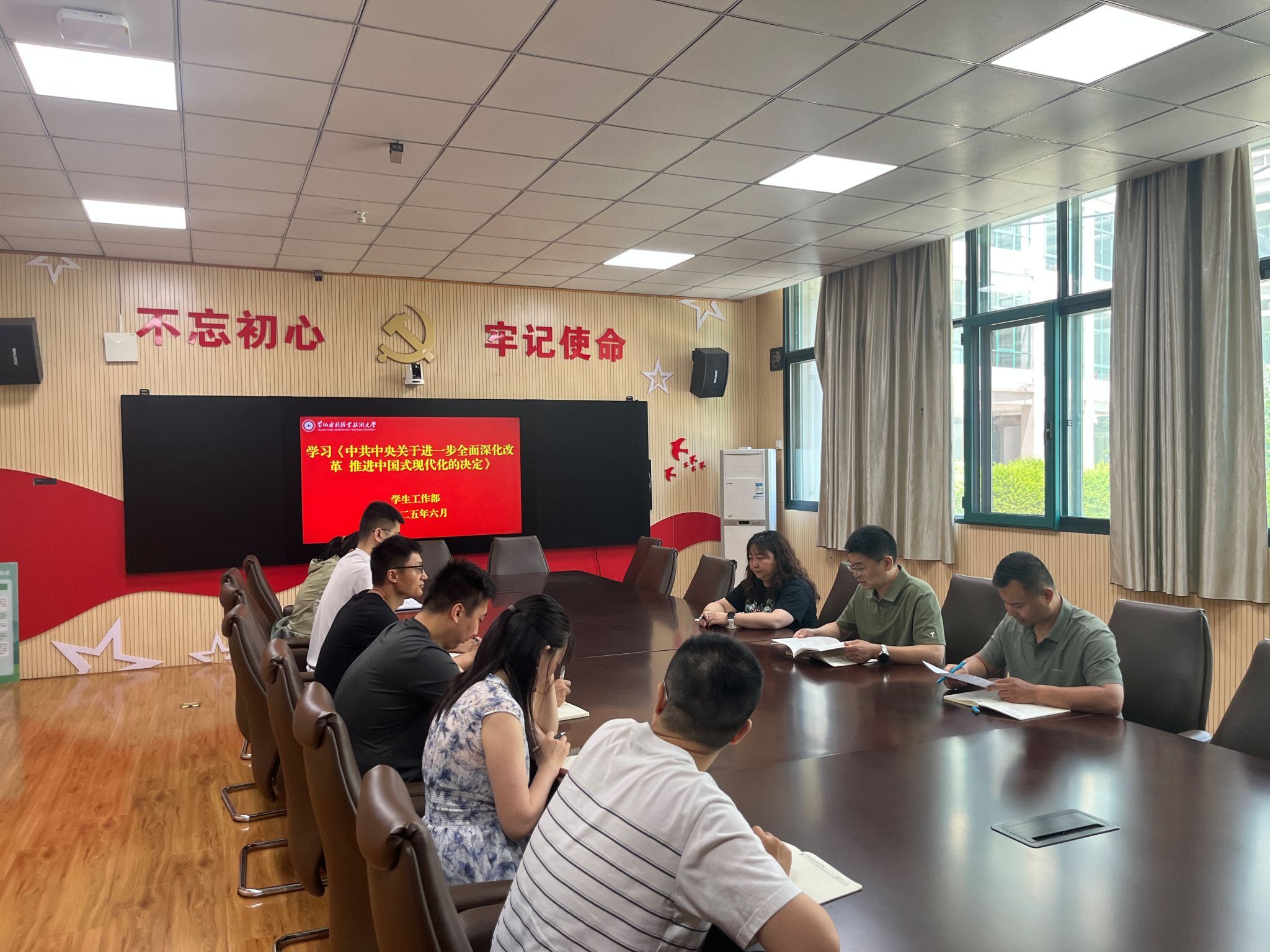 而对于习近平总书记关于《中共中央关于进一步全面深化改革、推进中国式现代化的决定》的说明,成员们认真研读,进一步明晰了全面深化改革、推进中国式现代化的紧迫性与重大意义。明确了在实际工作中,要以学生为中心,切实将改革精神贯彻到日常学生服务与管理的各项工作中。