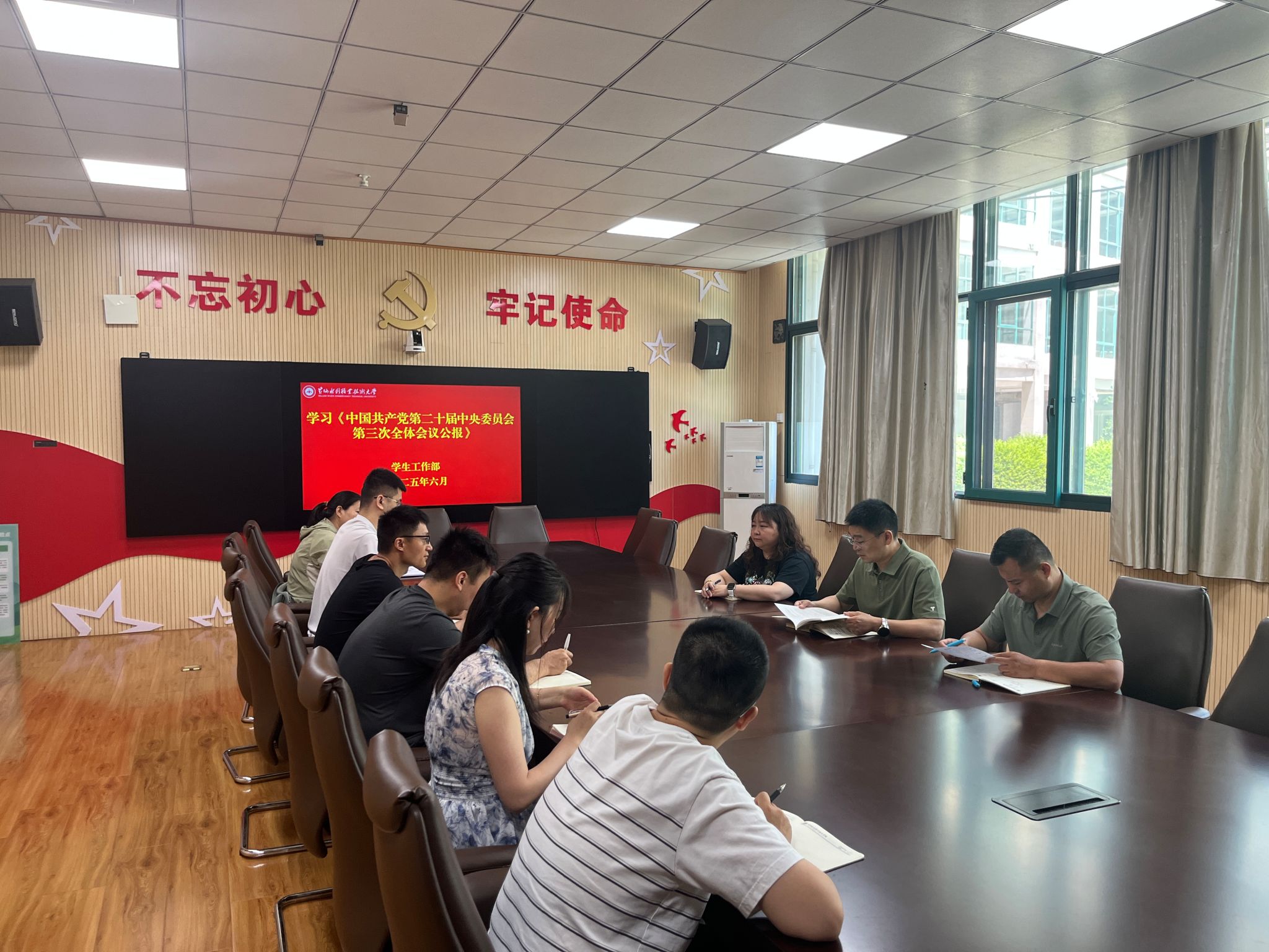 6月17日,学生工作部召开政治理论学习专题会议,深入学习《中国共产党第二十届中央委员会第三次全体会议公报》《中共中央关于进一步全面深化改革、推进中国式现代化的决定》以及习近平总书记关于《中共中央关于进一步全面深化改革、推进中国式现代化的决定》的说明。会议由学生工作部部长商坤主持,部门全体人员积极参与,旨在全面提升部门成员的政治素养与业务能力,为学生思想政治教育与管理工作筑牢坚实的理论根基。