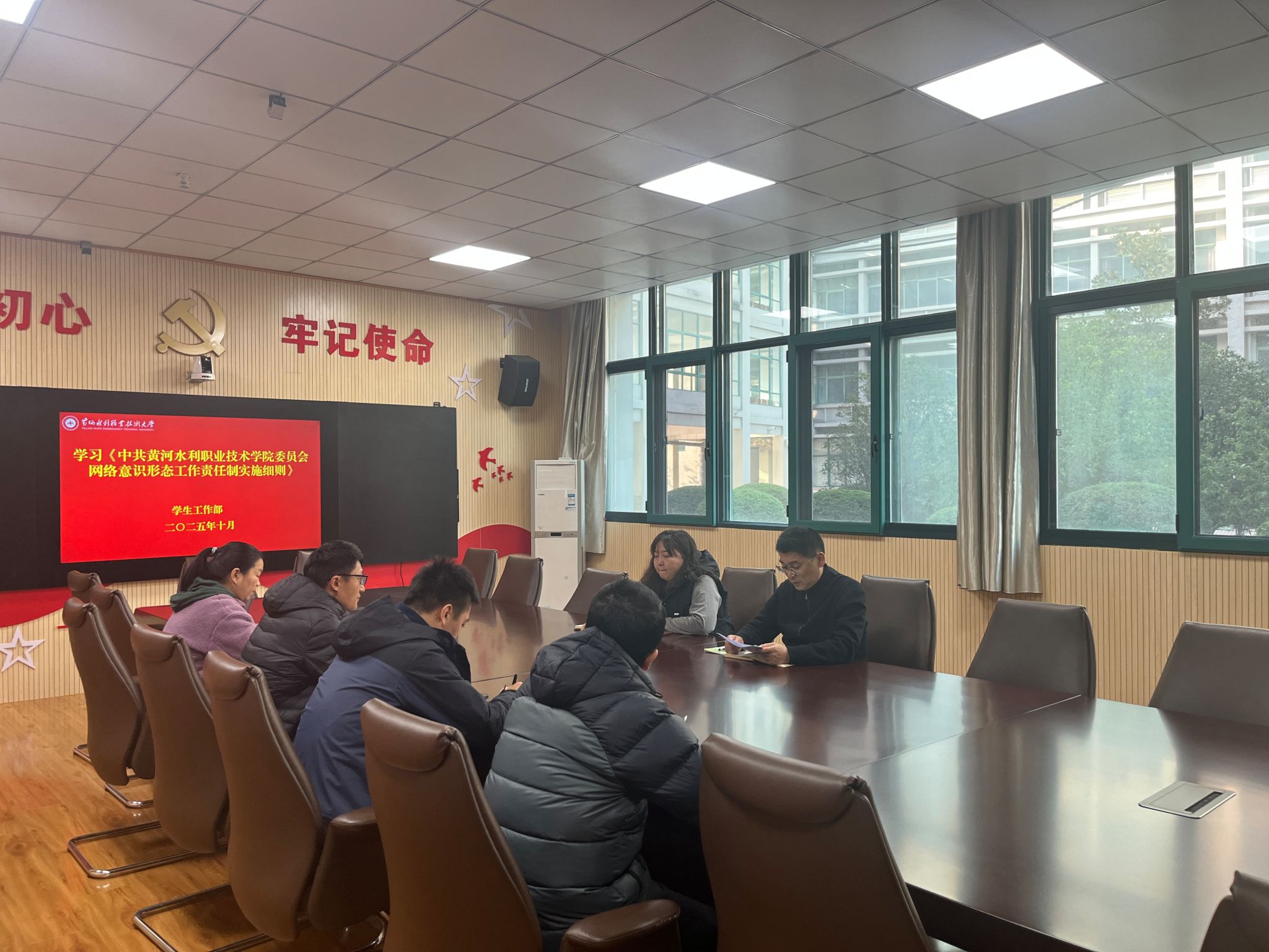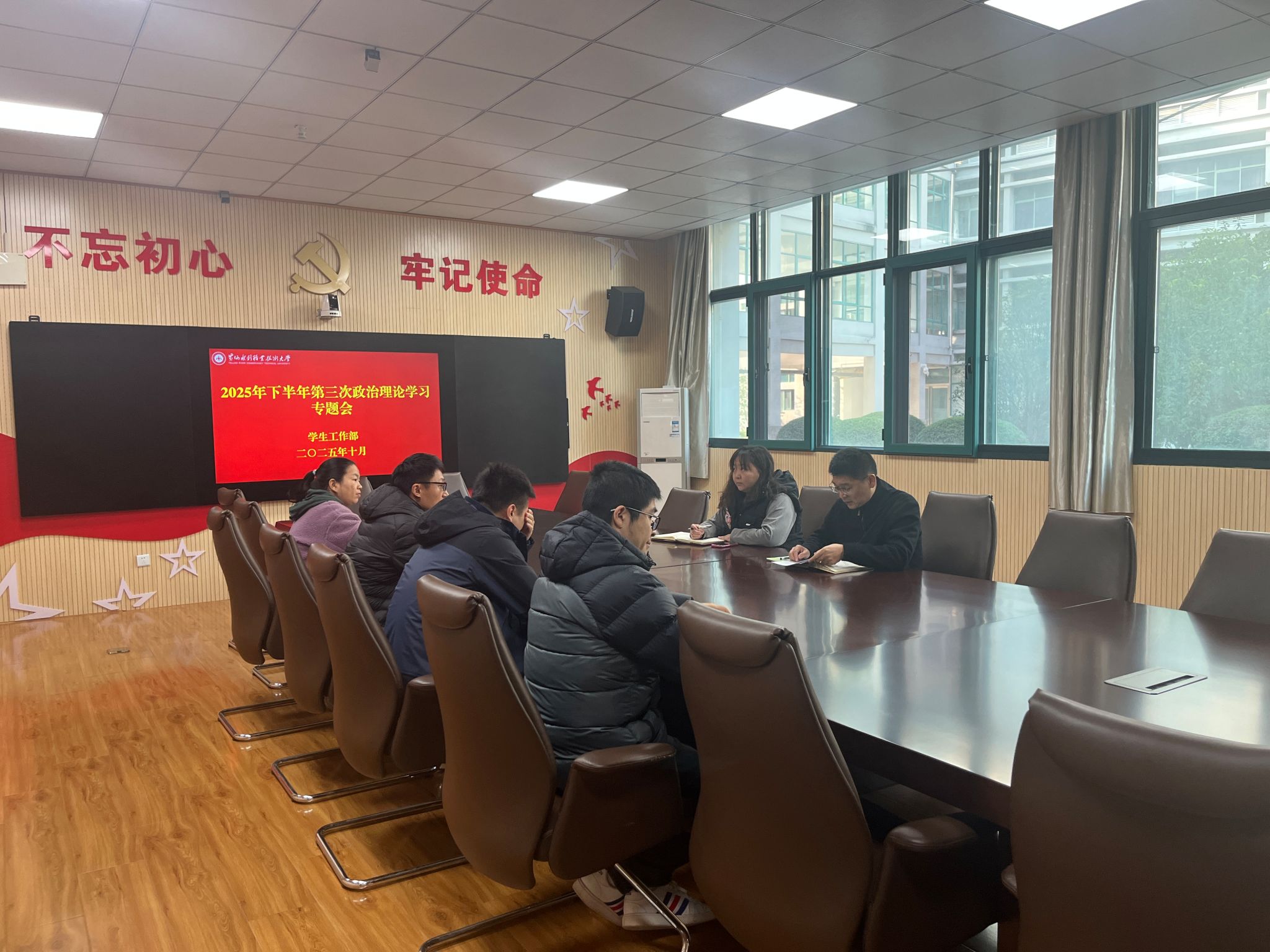 10月21日,学生工作部召开2025年下半年第三次政治理论学习专题会,此次会议聚焦《中共yl8cc永利官网委员会意识形态工作责任制实施细则》和《中共yl8cc永利官网委员会网络意识形态工作责任制实施细则》展开深入学习。会议由学生工作部部长商坤主持,部门在校人员全部参加,旨在进一步强化部门成员对意识形态工作的认识,提升责任意识与工作能力,为学生思想政治教育工作的开展筑牢根基。