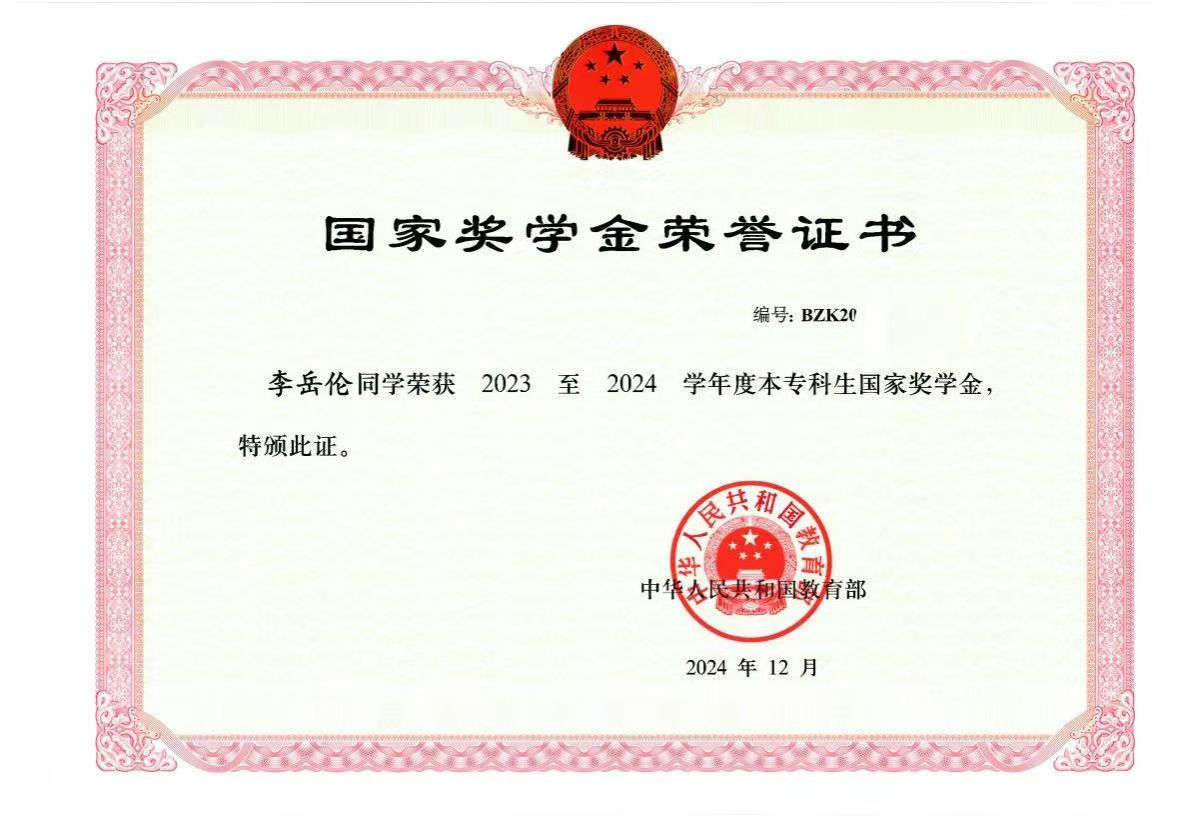 踏入大学校园后,他将“合抱之木,生于毫末”的古训刻进骨子里,把每一份努力都沉淀在日常的积累中。课堂上,他是最专注的聆听者;实训室里,他是最晚离开的身影。连续两个学年,他的学业成绩和综合测评均位列专业第一,凭借优异表现先后斩获国家奖学金、国家励志奖学金。对他而言,书本不仅是知识的载体,更是跨越阶层的桥梁——他用脚踏实地的耕耘,在贫寒与理想之间铺就了一条向上的路。