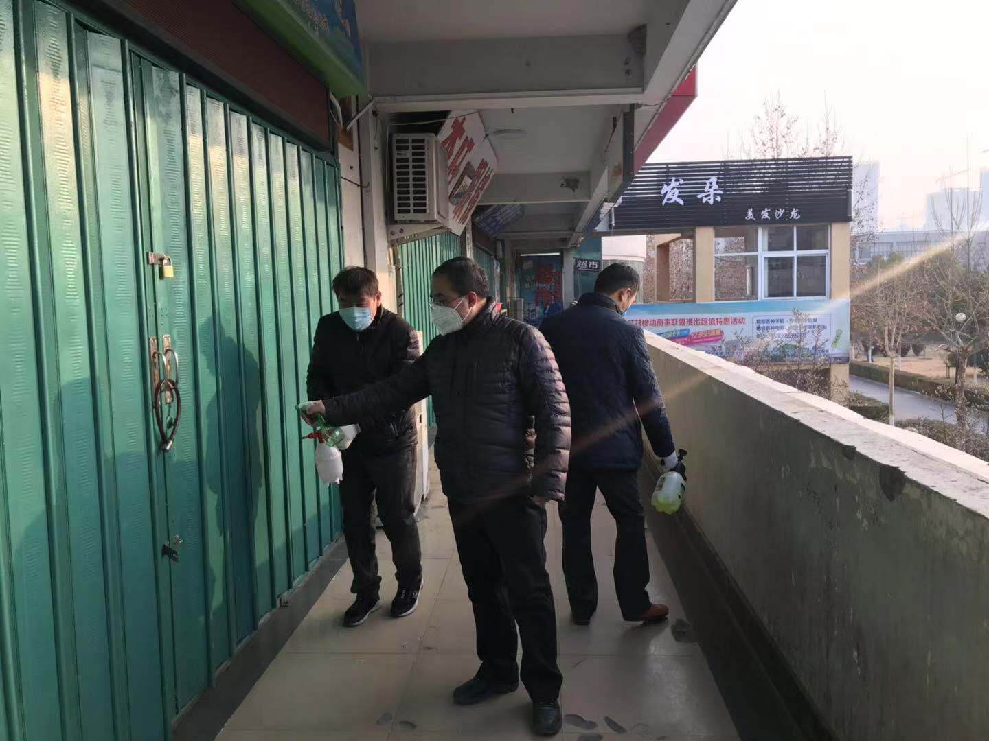 资产经营管理中心党总支还组织党员坚持每天定时定次对生活服务商贸中心、上善快捷酒店等公共区域进行消毒,做到消杀细致不留死角,防止人群聚集交叉感染。