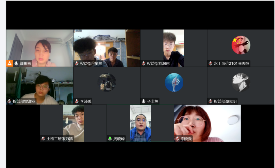10月26日下午,资产经营管理中心组织学生会权益部学生干部召开校园商户学生督导线上会议,会议由资产经营管理中心党总支书记鄢彬彬主持,中心主任周晓峰,副主任成继恩,学生会权益部学生干部参加会议。
